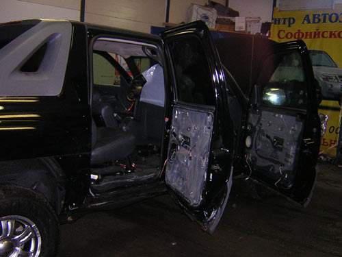 По требованию владельца этого огромного американского внедорожника мы инсталлировали акустические динамики в передние и задние двери, 4-х канальный усилитель и ксенон Hella