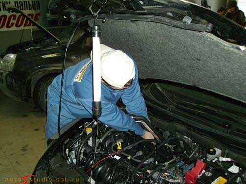 На данный автомобиль был установлен охранный комплекс, сформированный нашими специалистами. Он состоит из автосигнализации MS 600 Light Сталкер, бесконтактного иммобилайзера Black Bug BT 72L, электро-механического замка капота Defen.time, а также реле для управления этим замком HOOK-HL D