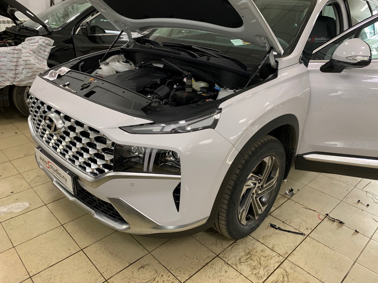 Записано при установке защитной сетки радиатора на Hyundai Santa Fe, 2021 года выпуска