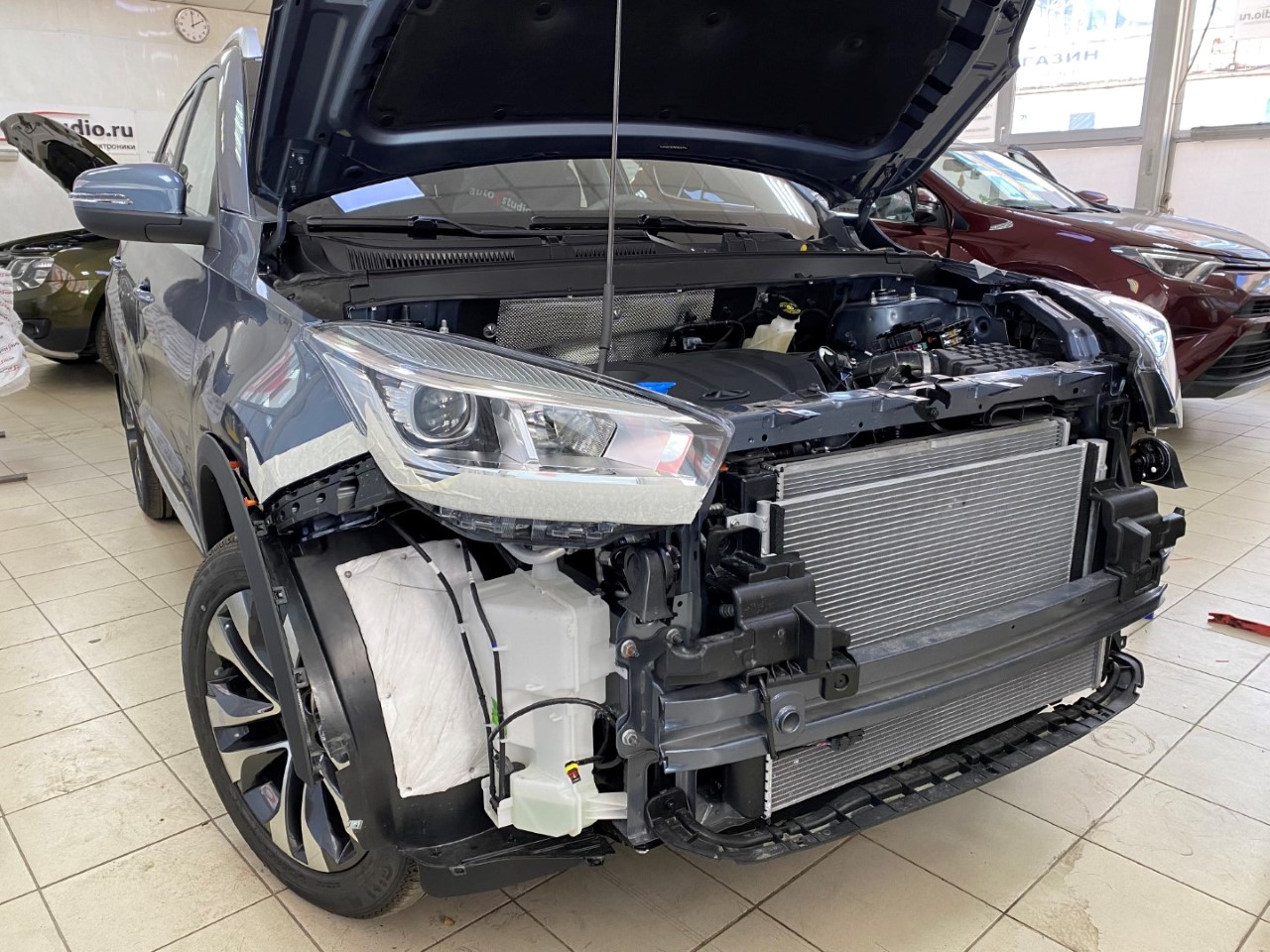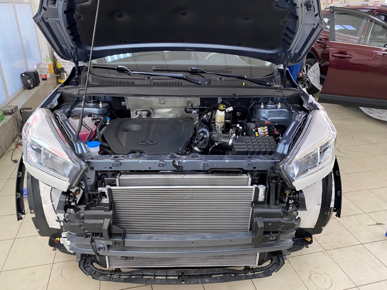 Записано при установке защитной сетки радиатора на Chery Tiggo 4, 2021 года выпуска