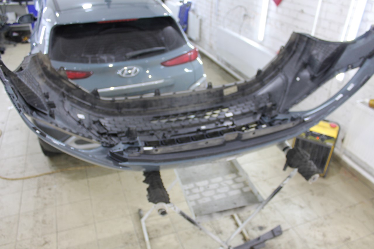 Установка защитной сетки радиатора на автомобиль Hyundai Kona 2024 года