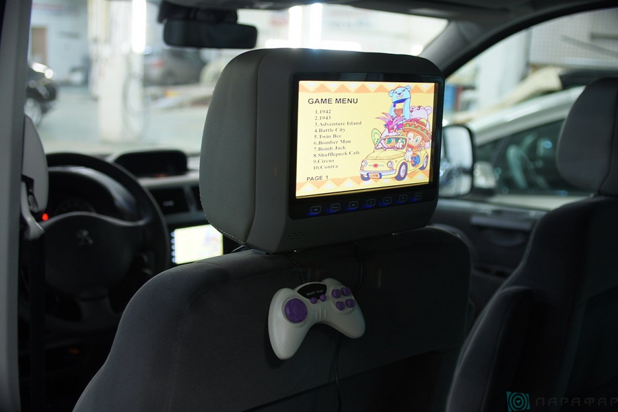 Подголовник со встроенным DVD плеером и монитором диагональю 9" обладает исключительным качеством материалов и отделкой из высококачественной искусственной кожи, благодаря чему подголовник идеально подходит для установки в автомобили всех марок любого класса. Отличительной особенностью данной модели является цифровая матрица HD 800х480 и сенсорные кнопки управления Touch button. Подголовник оборудован системой антишок для увеличения качества воспроизведения при вибрации, возникающей при движении автомобиля. В комплект монитора в подголовник входит диск на 300 игр с проводным джойстиком.