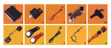 1 - базовый блок, 2 - аналоговое реле, 3 - трехцветный светодиод, 4 - монтажные провода, 5 - концевик (евростандарт), 6 - набор брелоков, 7 - ключи Touch Memory, 8 - считыватель ключей Touch Memory, 9 - концевик, 10 - цифровое реле блокировки DAWT (возможно подключение ко всем системам с мультиплексной шиной DAWT), 11 - циф-ровое реле замка капота Defen.Time (возможно подключение ко всем системам с мультиплексной шиной DAWT), 12 - цифровое совместное реле Double Inside (возможно подключение ко всем системам с мультиплексной шиной DAWT), 13 - двухзоновый микроволновый датчик (возможно подключение ко всем системам Meritec).