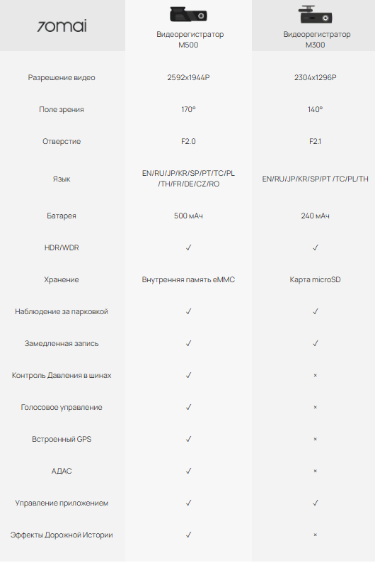 Видеорегистратор 70mai Dash Cam M500 данного регистратора нет экрана, нет слота под карту MicroSD, нет никаких кнопок, кроме кнопки включения (так же используется для вкл/выкл Wi-Fi, форматирования памяти и сброса к заводским настройкам). Он легко и надёжно крепится на лобовом стекле прямо за зеркалом заднего вида и абсолютно не мешает обзору, а сам регистратор очень легко извлекается из держателя, не нужно ничего откручивать. М500 сам включается и начинает запись видео сразу после подачи питания, нужно только один раз настроить его через приложение. На кнопке включения есть световой индикатор, отображающий работу регистратора. Благодаря встроенному аккумулятору на 500мАч после отключения питания последняя видео запись сохраняется автоматически. Для управления регистратором можно использовать приложение либо управлять голосом, но только на английском языке. Для записи используется внутренняя память eMMC 5.1. Длинна видео по умолчанию 1 минута, через приложение можно увеличить её до двух или трёх минут. Так же по умолчанию отключена запись звука, включается в приложении, как и русский язык. Чтобы скачать файлы необходимо подключить регистратор к смартфону по Wi-Fi либо подключить его к компьютеру по USB. В М500 есть такие технологии, как антитуман, цифровое шумоподавление и HDR (высокий динамический диапазон). На видео отчетливо видны дорожные и номерные знаки при любом освещении. Широкий угол обзора 170 градусов позволяет записывать всё что происходит на вашем пути. Встроенный GPS отображает скорость и координаты на видео (эту функцию можно отключить в приложении).