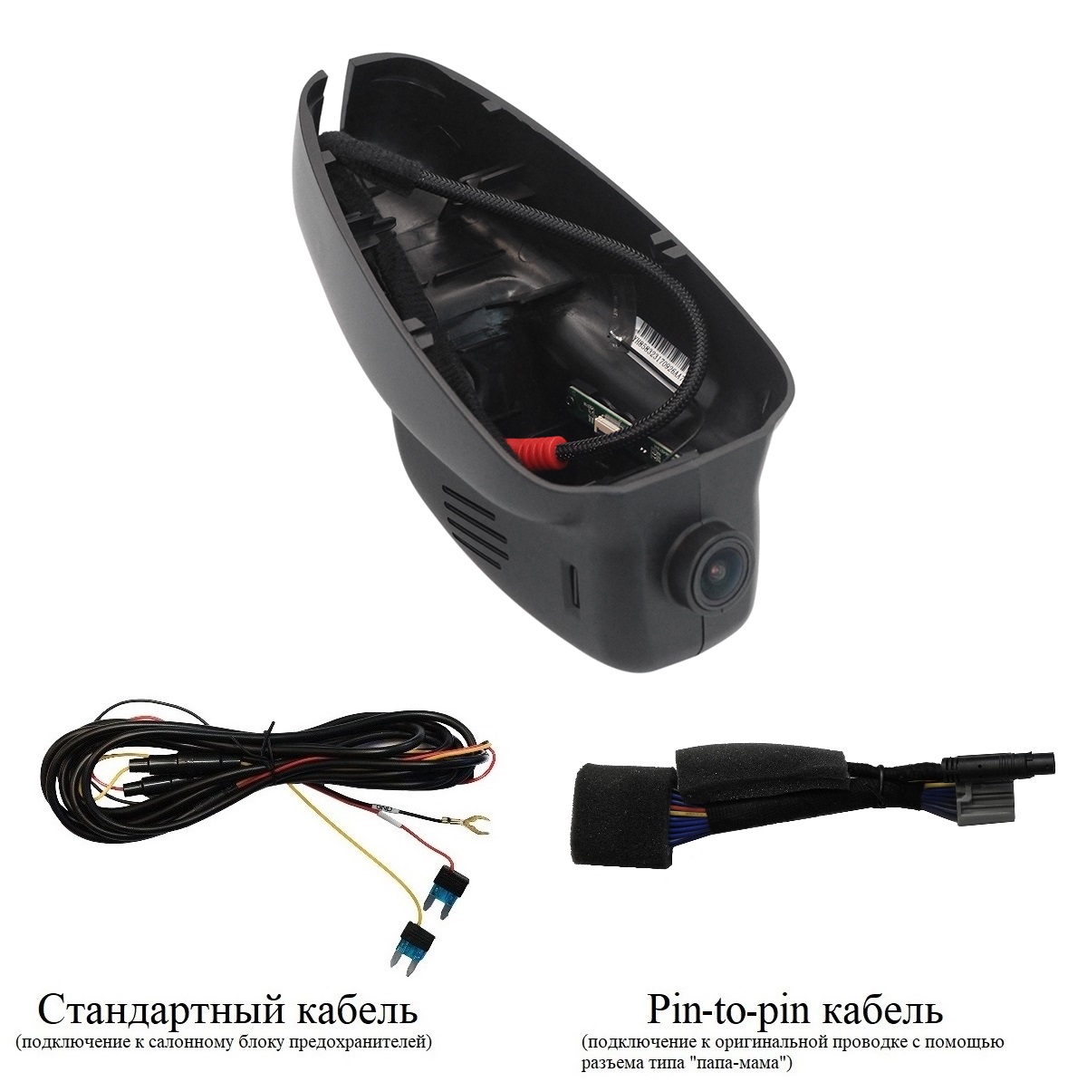 - Провод питания (два варианта подключения питания: стандартный кабель и кабель типа папа-мама к оригинальной проводке)