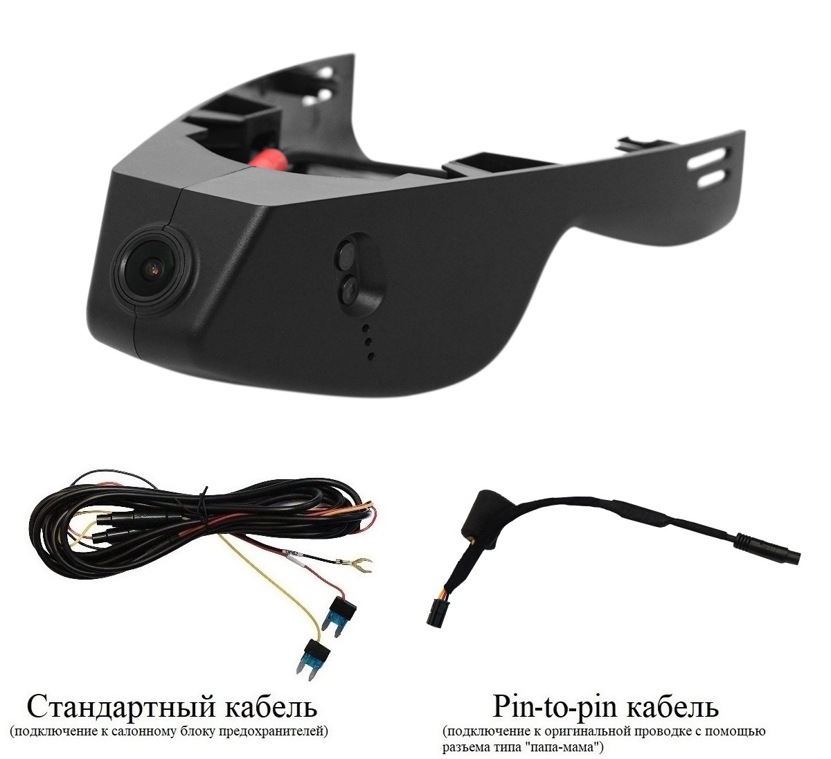 - Провод питания (два варианта подключения питания: стандартный кабель и кабель типа папа-мама к оригинальной проводке)