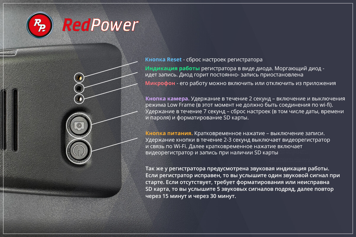 - Звуковая и диодная индикация работы регистратора