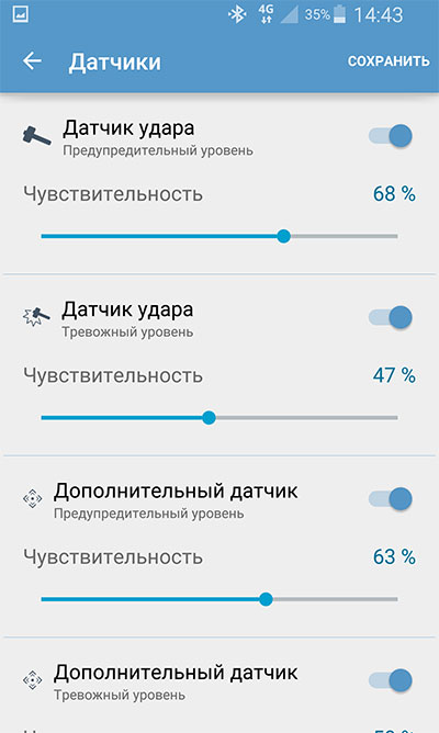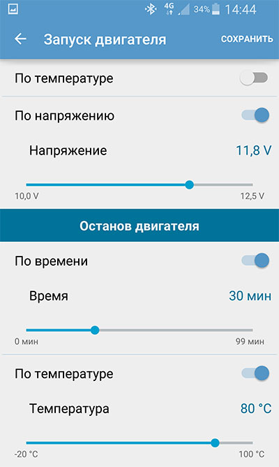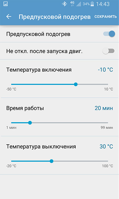 – Дистанционная настройка основных параметров телеметрической системы, чувствительности датчиков, параметров запуска, автоматической работы и останова двигателя, параметров включения, работы и отключения штатных и дополнительных предпусковых подогревателей и догревателей двигателя. Настройки тревожных, сервисных и экстренных уведомлений и т.д.